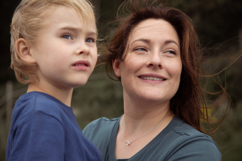 När det kommer till kläder är det viktigaste är att du och barn är bekväma i det ni har på er. Är det en fotografering med ett litet barn så kan hud mot hud vara ett vackert alternativ. Alla kroppar är fina.